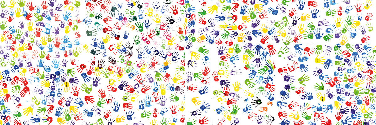 Begonnen haben wir mit einem Stück Stoff. Im ganzen Aktionszeitraum wurde daraus ein über 12 Meter langes Banner mit gut 600 bunten Handabdrücken.