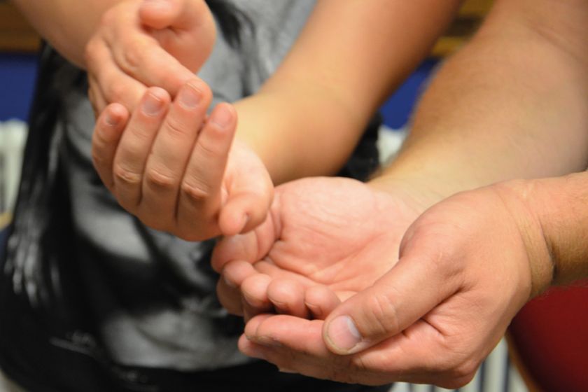 Aufgabe ist es, in einer Menschenkette, die alle Teammitglieder beinhaltet, das Wasser von Hand zu Hand in den leeren Eimer zu befördern.